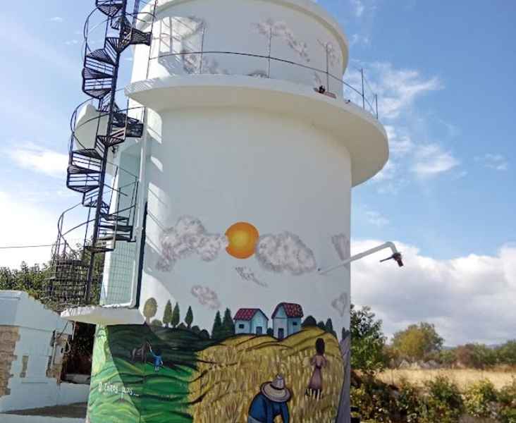 Ιορδάνης Ξανθόπουλος Ένα κτήριο-σύμβολο για την κωμόπολη της Νιγρίτας απέκτησε νέα «ψυχή» και όψη χάρη στις πινελιές της Σταυρούλας Μπαλαμπανίδου Μία διαφορευική και πάντως πανέμορφη όψη έχει αποκτήσει εδώ και λίγες ημέρες το ψηλό κτήριο του Υδραγωγείου στην περιοχή «Διαλεχτού» της Νιγρίτας και πολύ κοντά στο εκκλησάκι της Παναγίας, το οποίο μετατράπηκε σε πολύχρωμο καμβά με το τελικό αποτέλεσμα να θυμίζει περισσότερο…γκαλερί. Το 15 μέτρων ύψους Υδραγωγείο, που δεσπόζει στην περιοχή από το 1970 δέχθηκε…
