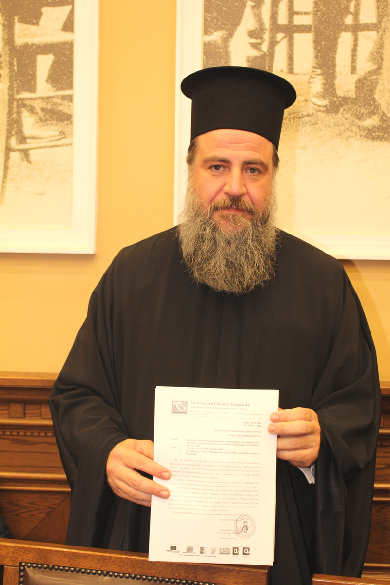 Ενωρίτερα, στις 10:00 το πρωΐ, ο Σεβ. Μητροπολίτης Σερρών και Νιγρίτης κ. Θεολόγος δέχθηκε στο γραφείο του στο Επισκοπείο Σερρών, τον Διοικητή Πυροσβεστικών Υπηρεσιών Κεντρικής Μακεδονίαςκ. Ιωάννη Στεργιούλα, συνοδευόμενο από τον Διοικητή και τον Υποδιοικητή Πυροσβεστικών Υπηρεσιών Ν. Σερρών κ. κ. Ανδρέα Θεοδωρίδη και Παντελεήμονα Ελευθεριάδη, με τους οποίους είχε μακρά και εγκάρδια συζήτηση.
