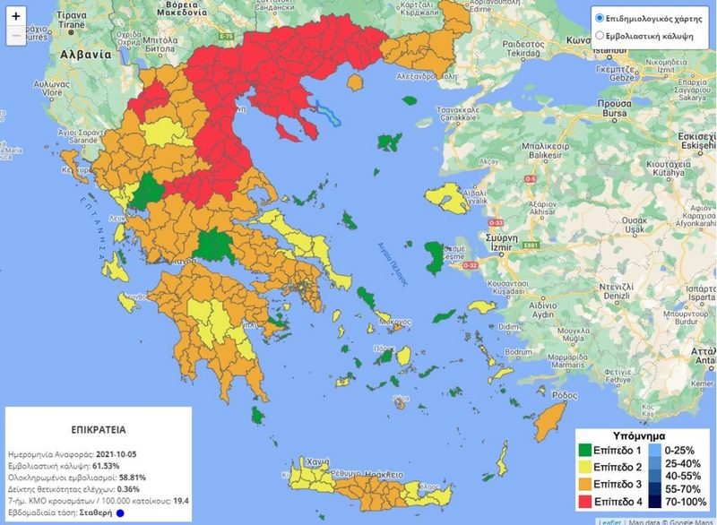 Δείτε τον επιδημιολογικό χάρτη της χώρας: