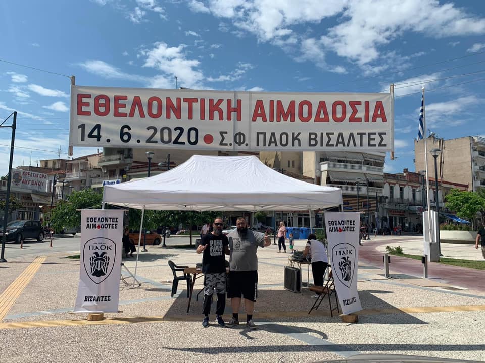 Η Δημοτική Αρχή Βισαλτίας, συγχαίρει και ευχαριστεί τον Σύλλογο Φίλων ΠΑΟΚ «ΒΙΣΑΛΤΕΣ» για την καθιερωμένη διενέργεια εθελοντικής αιμοδοσίας, από το Αιμοδοτικό Τμήμα του Συλλόγου που στηρίζει εδώ και χρόνια την ανάγκη που δημιουργείται από την έλλειψη σε επάρκεια αίματος. Συγχαρητήρια αξίζουν στο προσωπικό υγείας του σταθμού αιμοδοσίας του Γενικού Νοσοκομείου Σερρών και κυρίως στους εθελοντές αιμοδότες παλαιούς και νέους που συμμετείχαν την Κυριακή 14 Ιουνίου 2020 στην αιμοδοσία που πραγματοποιήθηκε στο Κ.Υ. Νιγρίτας. Αξίζει να αναφέρουμε ότι το παρόν έδωσε και ο γνωστός τραγουδιστής Μάκης Δημάκης, ως εθελοντής αιμοδότης.