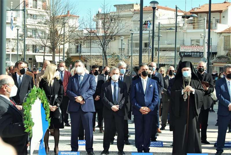 Στη συνέχεια τελέστηκε Επιμνημόσυνη Δέηση στο Ηρώων της πόλης και κατάθεση στεφάνων. Βέβαια στην κατάθεση υπήρξε πρόβλημα στην επικοινωνία με την Βουλή, με αποτέλεσμα να μην οριστεί εκπρόσωπος της. Υπήρξε σχετική αμηχανία για το θέμα και αξίζει να σημειωθεί ότι η κατάθεση που έγινε από τον βουλευτή κ. Μπούμπα έγινε με δική του πρωτοβουλία. Επίσης να θυμίσουμε ότι η κυβέρνηση είχε εκπροσωπηθεί την περασμένη Πέμπτη από τον υπουργό υποδομών και μεταφορών Κώστα Καραμανλή