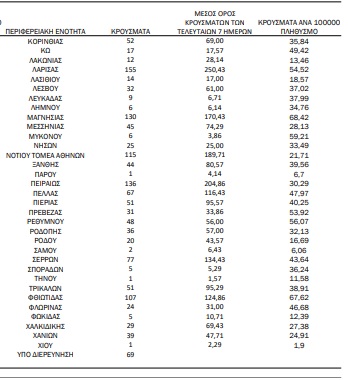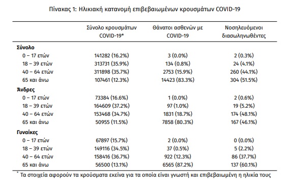 Οι νέοι θάνατοι ασθενών με COVID-19 είναι 76, ενώ από την έναρξη της επιδημίας έχουν καταγραφεί συνολικά 17.313 θάνατοι. Το 95.4% είχε υποκείμενο νόσημα ή/και ηλικία 70 ετών και άνω.