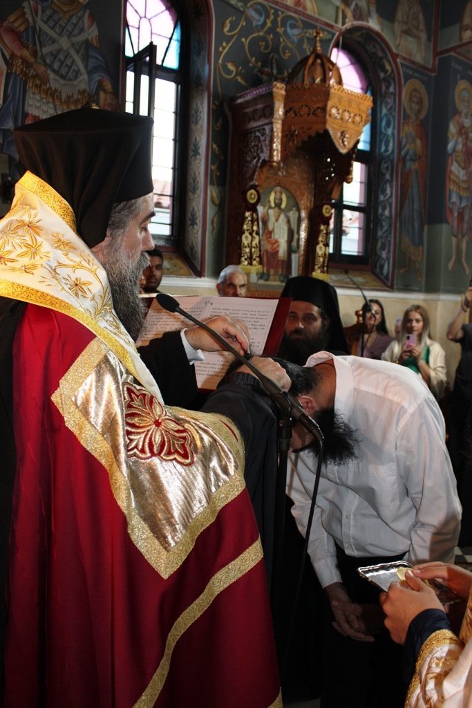 Προσφέρεσαι στον Χριστό και την Εκκλησία Του αυτοπροαιρέτως σε έκφραση της φλογερής αγάπης σου προς τον Νυμφίο Χριστό, ανταποκρινόμενος στο θείο κάλεσμά Του, το οποίο από της μικρής σου ηλικίας αισθάνθηκες στην ζωή σου και καλλιέργησες με την βοήθεια των πνευματικών σου πατέρων. Λαμβάνεις ως αντίδωρο της προσφοράς σου αυτής το ευλογημένο μοναχικό ένδυμα, με ότι αυτό, άγιο και ουράνιο συμβολίζει, ως και το μοναχικό σου όνομα Ιωσήφ, ένα όνομα για την αιωνιότητα…Η σκέπη του Δικαίου Ιωσήφ, του μνήστορος της Παναγίας μας, εύχομαι να σκεπάζει τον καθημερινό σου αγώνα, τον αγώνα της προσευχής, της παρθενίας, της υπακοής, της ακτημοσύνης και της ταπεινώσεως, ώστε να εκπληρώνεις θεαρέστως την μοναχική σου διακονία, να βιώνεις αγγελομιμήτως τον μοναχικό τρόπο ζωής, να δοξάζεις τον Θεό, να αναπαύεις την αγία Εκκλησία μας, να προκόβεις και να αγιάζεσαι. Καλόν Παράδεισο, παιδί μου. Να ευαρεστήσεις εις τον Θεόν και στους ανθρώπους του Θεού και να αγιάσεις. Αμήν».