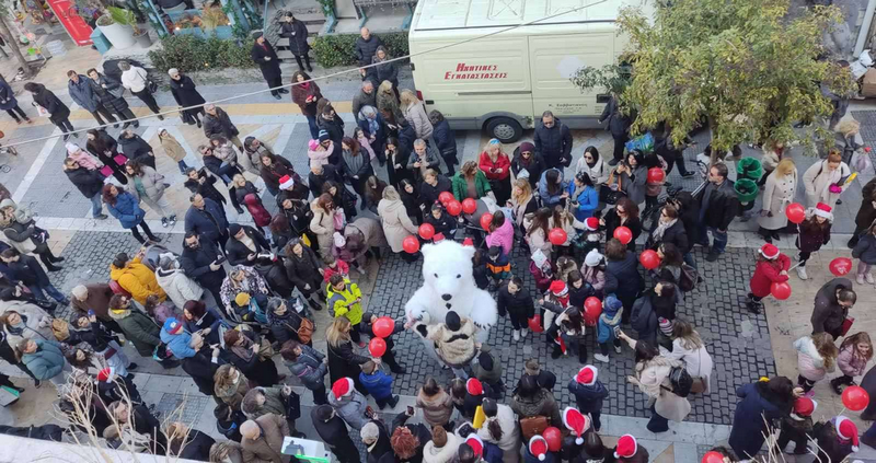 Η διάθεση απογειώθηκε όταν κατέφθασε και ο γιγάντιος αρκούδος που χόρεψε με αστείρευτο κέφι με μικρούς και μεγάλους.