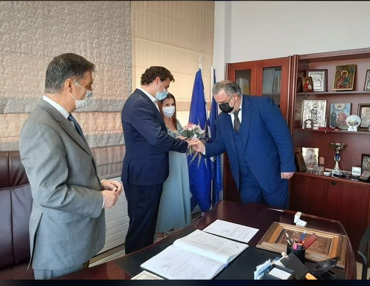 Πολιτικός γάμος σήμερα 5/3. Ο ανιψιός του δημάρχου με έναν εκ των δύο κουμπάρων τον αντιδήμαρχο Γιάννη Αδαμούδη. Ζευγάρι: Αθανάσιος Μασλαρινός- Ρίτσα Ζαφειράκη Κουμπάροι: Γιάννης Αδαμούδης – Βασίλης Ζεϊμπεκίδης.