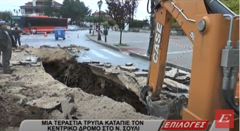 Μια τεράστια τρύπα, μέσα σε πολύ σύντομο χρονικό διάστημα άνοιξε στον δρόμο της κεντρικής εισόδου στο χωριό Ν. Σούλι του Δήμου Εμ.Παππά.