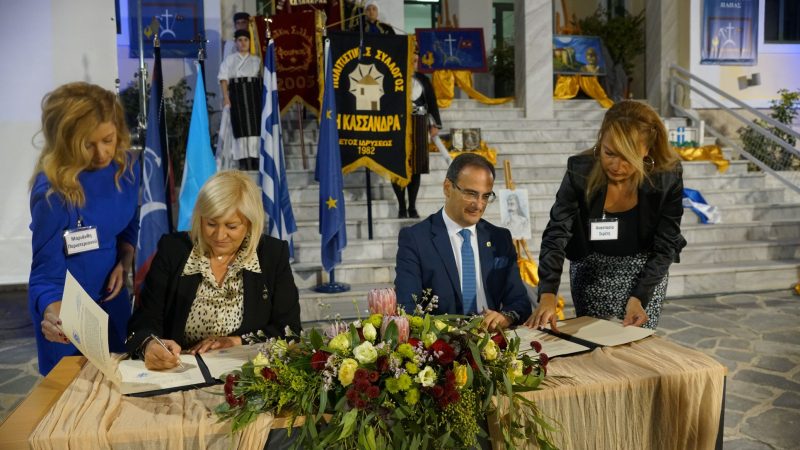 «Υπογράφουμε την τελική πράξη της αδελφοποίησης των δύο Δήμων μας με σκοπό να αναδειχθεί, πλήρως τόσο η μεγάλη ιστορική φυσιογνωμία του Εμμανουήλ Παπά, όσο και ο κυριολεκτικός αφανισμός ενός ολόκληρου λαού, του λαού της Κασσάνδρας», τόνισε η Δήμαρχος Κασσάνδρας Αναστασία Χαλκιά καλωσορίζοντας τον Δήμαρχο Σερρών Αλέξανδρο Χρυσάφη.