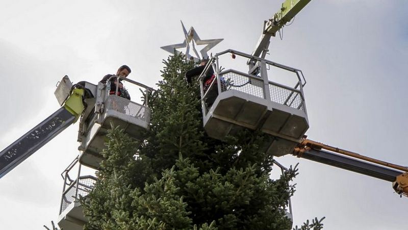 Το Χριστουγεννιάτικο δέντρο είναι από το Καρπενήσι και έχει ύψος 19 μέτρα. Το δέντρο πάνω του έχει 60.000 λαμπάκια και σε μέτρα είναι 5 χλμ.