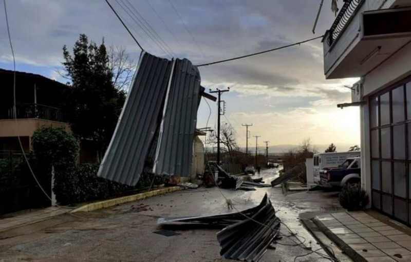 Κομμάτια από λαμαρίνες κρεμάστηκαν σε ηλεκτροφόρα καλώδια, προκαλώντας προβλήματα στην ηλεκτροδότηση της περιοχής, και για την απομάκρυνσή τους κλήθηκαν συνεργεία του ΔΕΔΔΗΕ καθώς και η Πυροσβεστική Υπηρεσία.