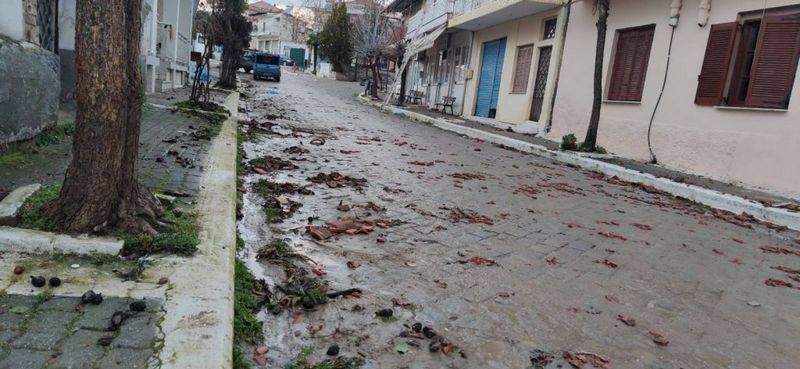 Ο δρόμος γέμισε θραύσματα από κεραμίδια (φωτογραφία diktyotv.gr)