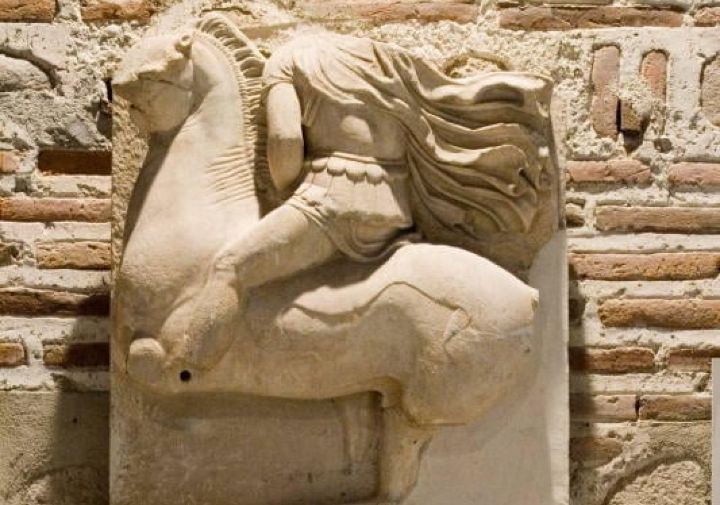 Ακέφαλο μαρμάρινο άγαλμα ιππέα. Βρίσκεται στο αρχαιολογικό μουσείο των Σερρών