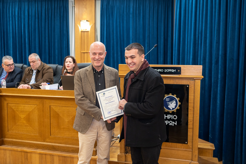 Οι νέοι πλέον φοιτητές έλαβαν τιμητικό έπαινο καθώς και ένα συμβολικό χρηματικό ποσό, τα οποία έδωσαν με μεγάλη χαρά ο Πρόεδρος του Επιμελητηρίου Σερρών, Αθανάσιος Μαλλιαράς, ο Α’ Αντιπρόεδρος, Γιώργος Μηχος,ο Β’ Αντιπρόεδρος, Γιάννης Παπουτσής, η Οικονομική Επόπτρια, Διαλεχτή Παυλάκη καθώς και τα μέλη του Δ.Σ, Γιώργος Ταίρης, Μάκης Τενεκετζής, Δημήτρης Ρήγας και Κωνσταντίνος Πεταλωτής.