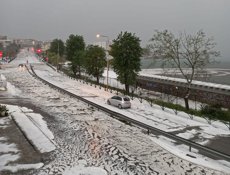 "Στα λευκά η Καβάλα – Το έστρωσε με χαλάζι (ΦΩΤΟ)"