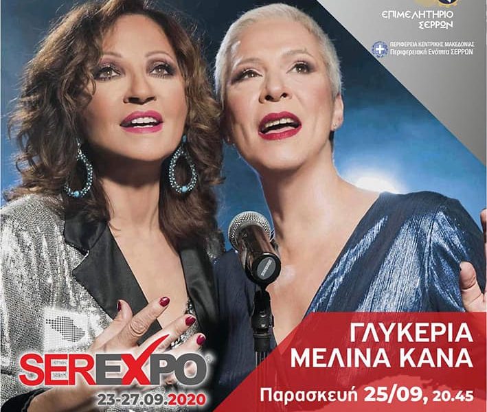 Η Γλυκερία και η Μελίνα Κανά  στην 6η SEREXPO την  Παρασκευή 25.09 & ΩΡΑ 20.45 – Συναυλιακό Stage SEREXPO, Στρατόπεδο Κολοκοτρώνη Μετά την Τελετή Εγκαινίων της 6ης SEREXPO, οι δύο σπουδαίες ερμηνεύτριες μαζί στο Συναυλιακό Stage της SEREXPO μοιράζονται τις ίδιες μουσικές αγάπες, τα ίδια όνειρα. Συμμετεχει ο Χάρης Μακρής! Στη SEREXPO απολαμβάνουμε τους αγαπημένους μας καλλιτέχνες πάνω από όλα με ασφάλεια, τηρώντας τις απαιτούμενες αποστάσεις καθώς και όλα τα προβλεπόμενα μέτρα προστασίας!