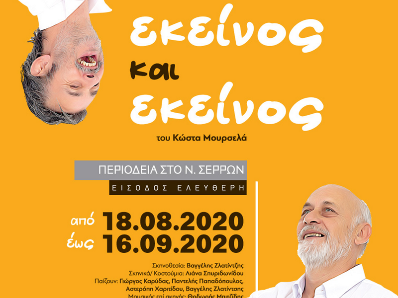 Το ΔΗ.ΠΕ.ΘΕ Σερρών σε συνεργασία με την Περιφερειακή Ενότητα Σερρών και την Κ.Ε.ΔΗ.Σ., δημιούργησε για το καλοκαίρι του 2020, την παράσταση «Εκείνος κι Εκείνος» του Κώστα Μουρσελά η οποία από 18-8-20 μέχρι 16-9-20 θα περιοδεύσει σε όλο τον Νομό Σερρών. Η παράσταση προσφέρεται στο κοινό με είσοδο ελεύθερη.   Ο Δήμος Βισαλτίας και συγκεκριμένα η Νιγρίτα θα αποτελέσει έναν από τους σταθμούς της περιοδείας, την Παρασκευή 11 Σεπτεμβρίου 2020 και ώρα 21:00 στην Παλαίστρα…