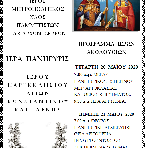 Η επιτροπή πανηγύρεως Αγίου Θωμά Νιγρίτας υπακούοντας στις προτροπές και συμβουλές της Εκκλησίας μας, στους κρατικούς περιορισμούς, λόγω της πανδημίας