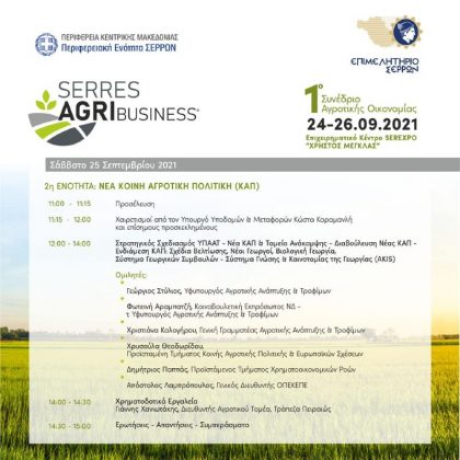 Το 1ο συνέδριο Αγροτικής Οικονομίας με την επωνυμία SERRES AGRIBUSINESS ανοίγει τις πύλες του στις 24 Σεπτεμβρίου 2021 και θα διαρκέσει έως τις 26 του μήνα.